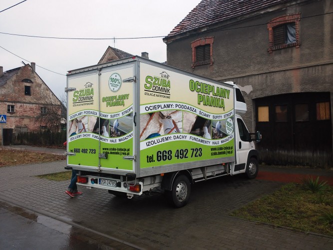 Proponujemy kilka wariantów oklejania pojazdów w zależności od potrzeb. Od prostych danych kontaktowych wyciananych z folii ploterowo aż po całkowite oklejenie pojazdu folią wylewaną.